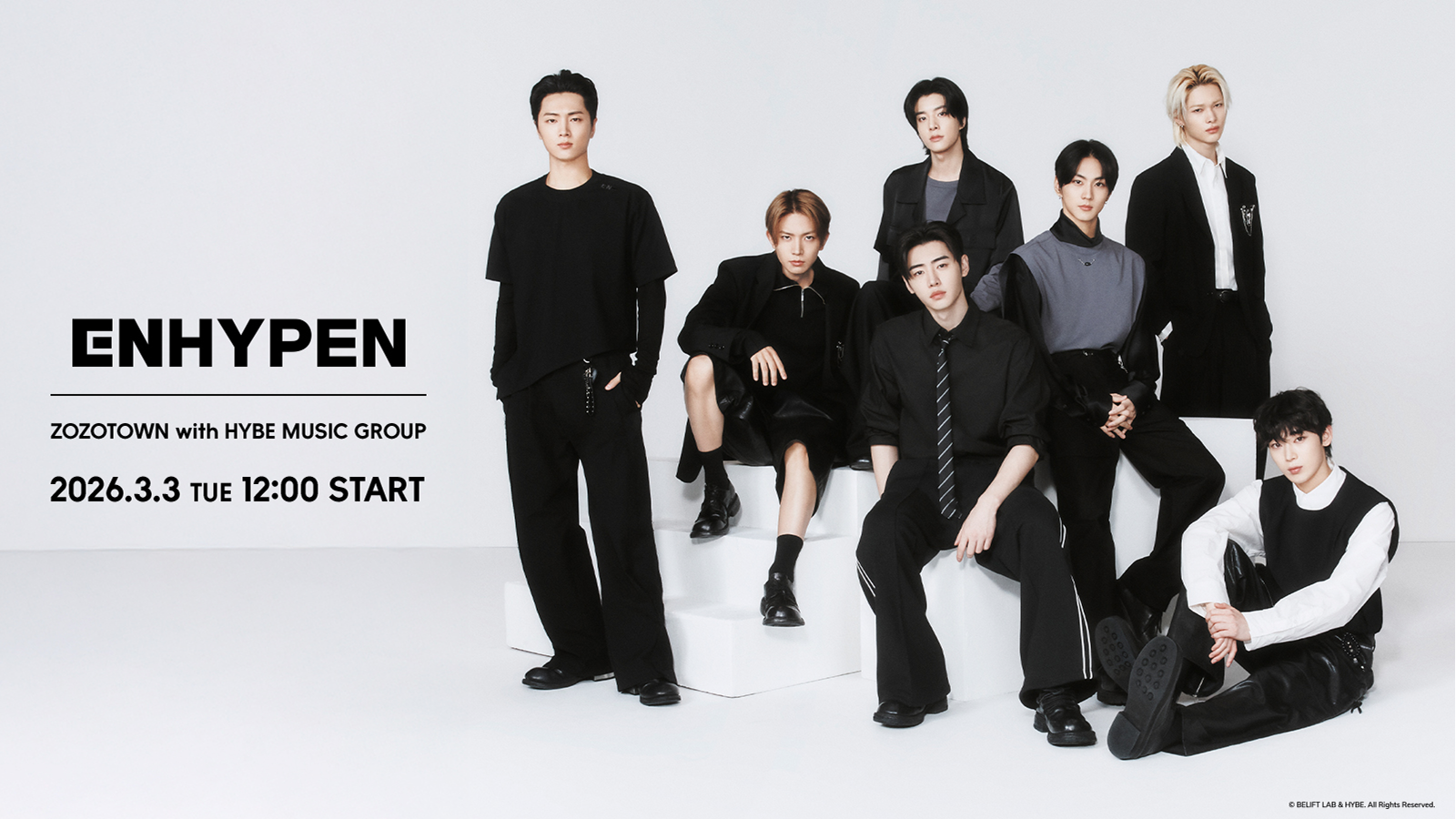 ZOZOTOWN20周年を記念した特別企画「ZOZOTOWN with HYBE MUSIC GROUP」(※)の第5弾として、 7人組グローバルグループ「ENHYPEN」とのオリジナルアイテムを3月3日(火)よりZOZOTOWN限定で販売します。